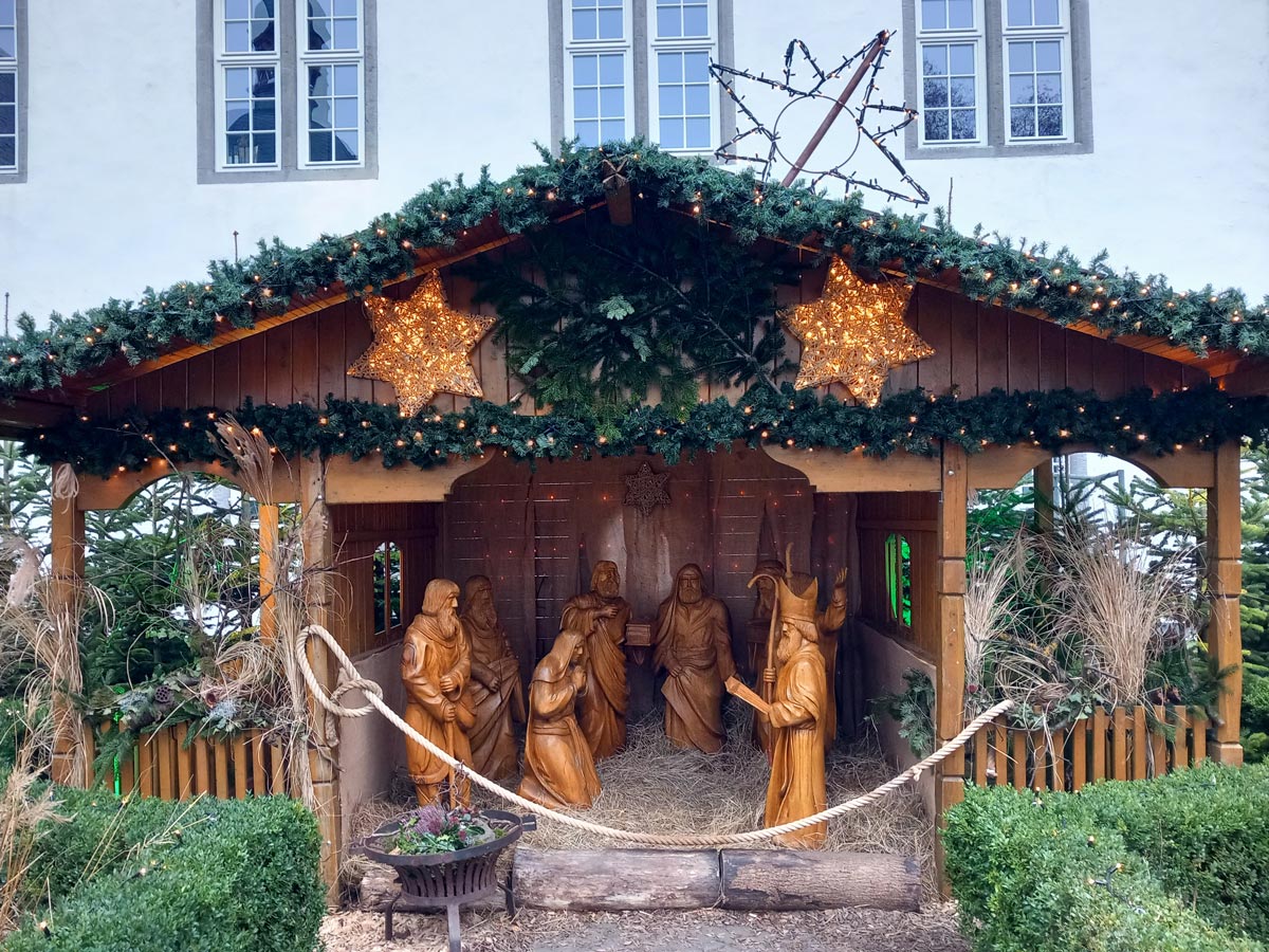 Das Christkind in der Krippe, das zentrale Motiv der Weihnachtskrippe ist da! Über Nacht hat es auch seinen Platz in der zentralen Krippe der Stadt Koblenz im Innenhof des Rathauses am Willi-Hörter-Platz gefunden. Gestern waren Krippenfiguren und Besucher noch in Erwartung und Vorfreude — heute ist die Krippe vollständig! Danke an den Weihnachtsmarktbetreiber Marco Koenitz, der dies ermöglichte und heute morgen noch aufbaute. Das Christkind symbolisiert neben der christlichen Tradition auch religionsübergreifend Frieden und Hoffnung. Schön, daß es nun auch hier angekommen ist.