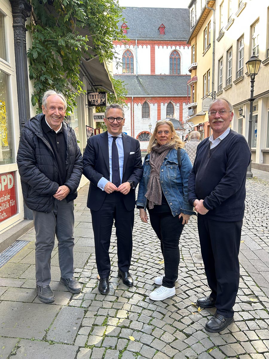 Zu einem gemeinsamen Gedankenaustausch und Gespräch trafen sich der Koblenzer SPD-Bundestagsabgeordnete Dr. Thorsten Rudolph und Vertreter der Bürgerinitiative “Unsere Altstadt” im SPD – Wahlkreisbüro des Abgeordneten im Herzen der Koblenzer Altstadt. Die BI freute sich zunächst darüber, dass der Vertreter einer demokratischen Partei in der Mehlgasse ein neues Domizil gefunden hat und somit die Politik in der Altstadt auch “Flagge” zeigt.