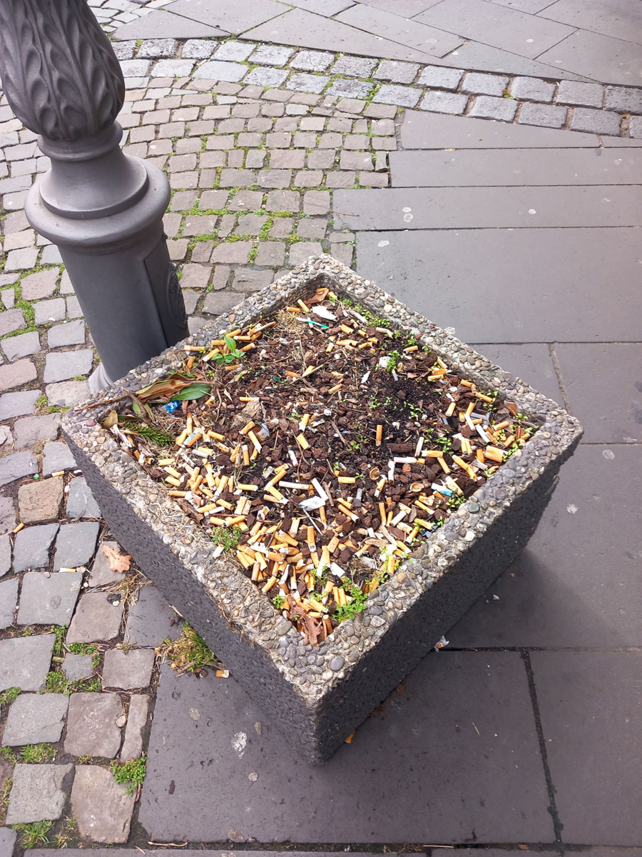 Bürgerinitiative “Unsere Altstadt” kritisiert Umgang mit weggeworfenen Zigarettenstummeln.