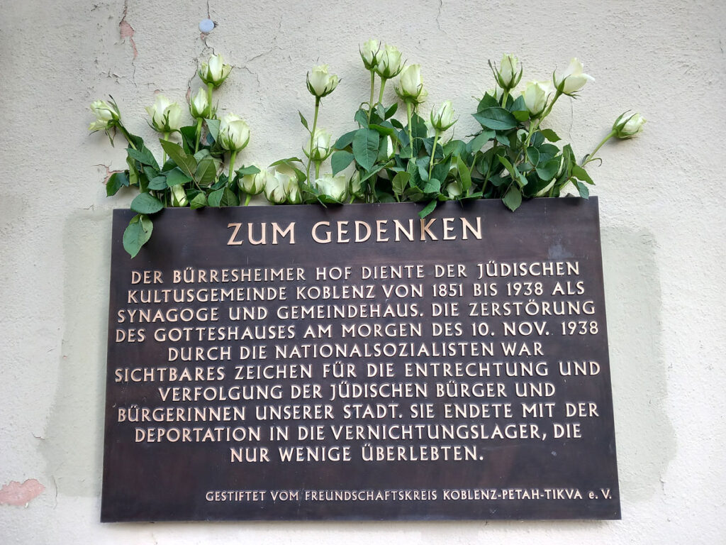 Am 9. November wird bundesweit an die Verfolgung der Juden in Deutschland in der Zeit des Nationalsozialismus gedacht. In der Nacht vom 9. auf den 10. November 1938 wurden in ganz Deutschland die meisten der damaligen rund 400 Synagogen verwüstet und/oder in Brand gesteckt, Friedhöfe geschändet und jüdische Geschäfte und Wohnungen verwüstet. So auch in Koblenz.