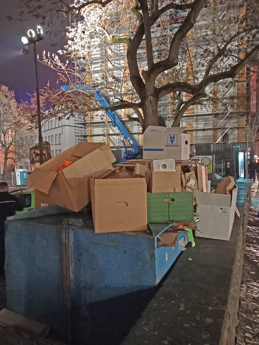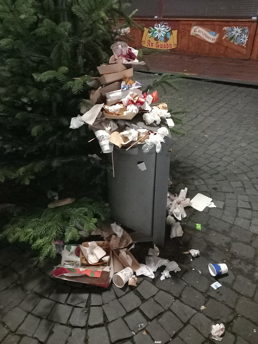 Das Adventswochenende nutzte die Bürgerinitiative “Unsere Altstadt” um ein weiteres Zwischenfazit zum Weihnachtsmarkt 2025 zu ziehen. Der ungebrochene Besucherzustrom auf den Koblenzer Weihnachtsmarkt zeigt, wie attraktiv und begehrt das Angebot der Koblenzer Alt- und Innenstadt insbesondere an Wochenenden im Advent für Koblenzer und Besucher aus dem Umland ist. Positiv hervorzuheben vor allem die allseits sichtbare Präsenz der Sicherheits- und Ordnungsdienste. Ein Thema neben der nicht ausreichend gelösten Parksituation (ständige regelwidrige Belegung der Be- und Entladezonen und der Anwohnerparkplätzen durch Altstadtbesucher) ist die Vermüllung. Zu geringe Kapazitäten in der Altstadt zeigen sich trotz Sonderschichten der Abfallbeseitigung vor allen an den Wochenenden. Zudem ist die Frage der Entsorgung der Zigarettenreste scheinbar nicht ausreichend im Focus. Aber auch bei den Kartonagen aus dem gewerblichen Bereich ist “Luft nach oben”. Die optischen Eindrücke aus der aktuellen Nacht vom Samstag auf Sonntag sprechen für sich! “Dies darf daher bei der Überarbeitung ind Evaluierung des Weihnachtsmarktkonzeptes 2026 nicht ausser Acht gelassen werden”, kommentiert die Bürgerinitiative ihre Beobachtungen.